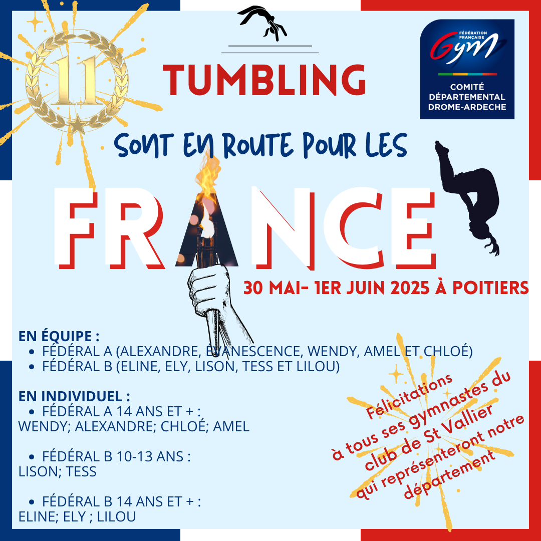 a qualifié 2 ensembles et 9 individuels pour les championnats de France 2025 en Tumbling.🇨🇵