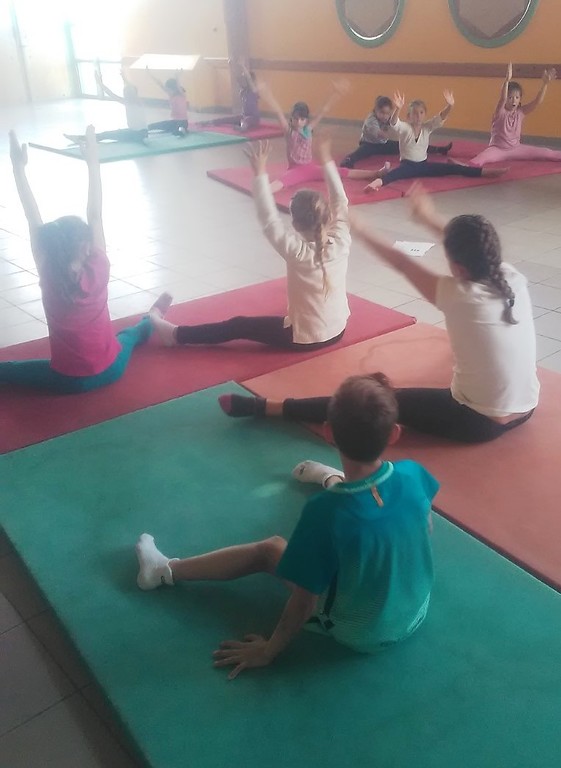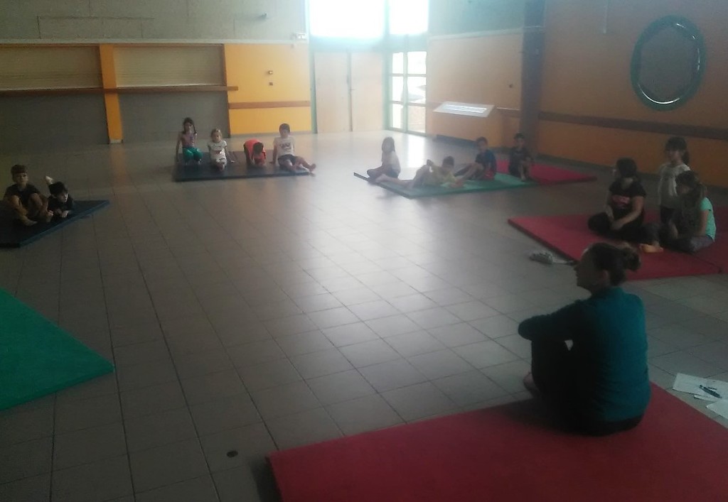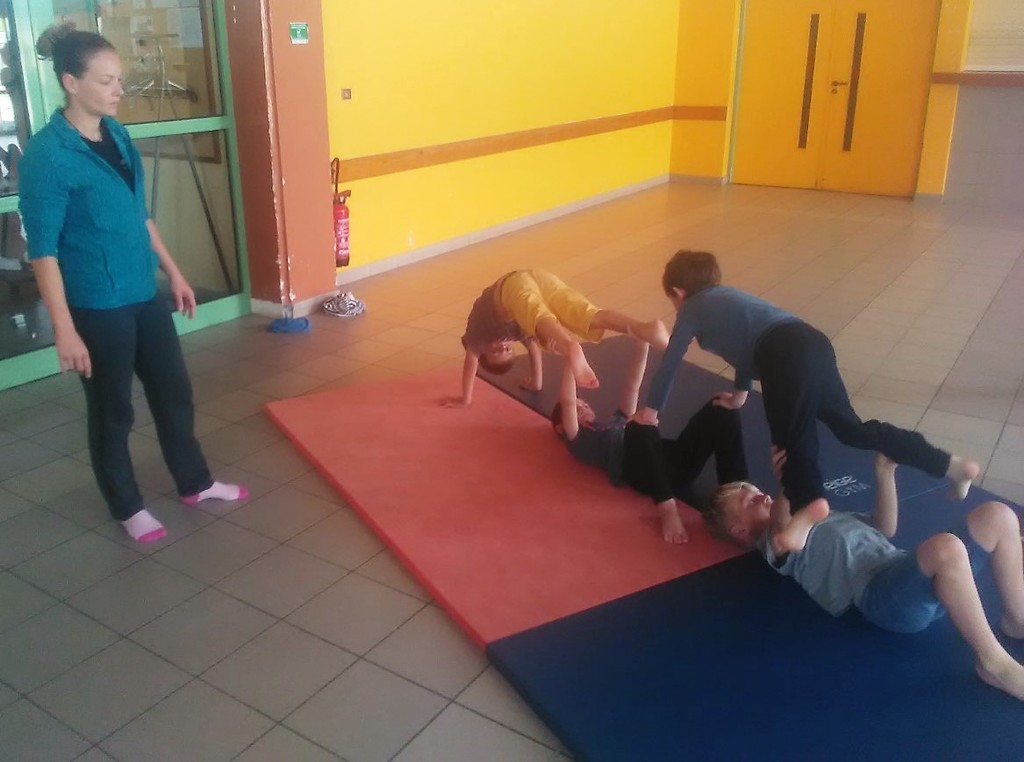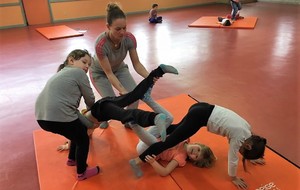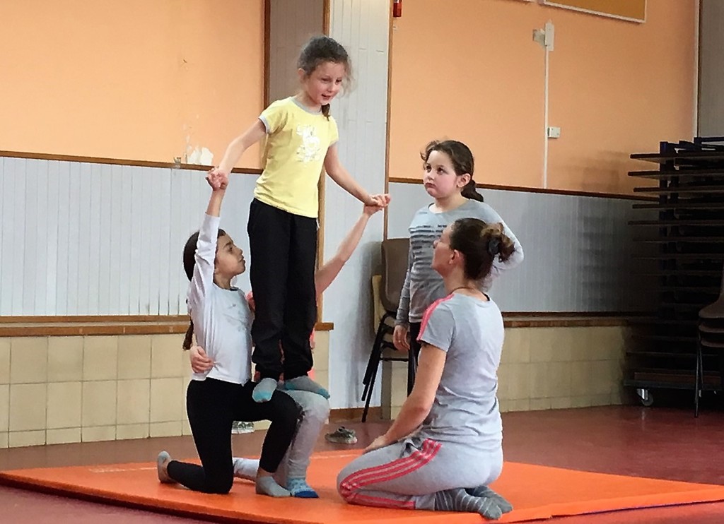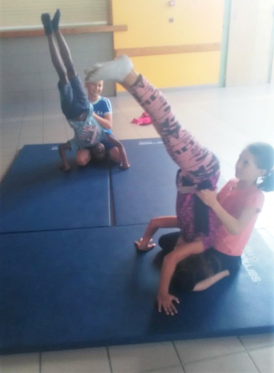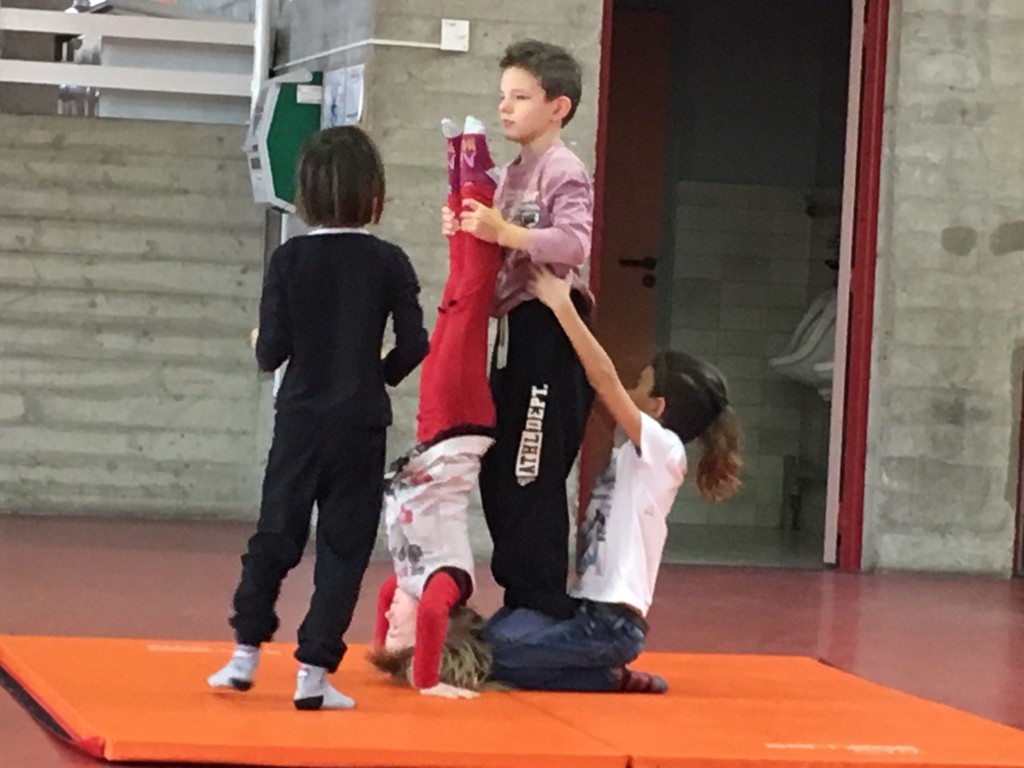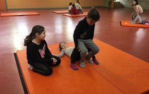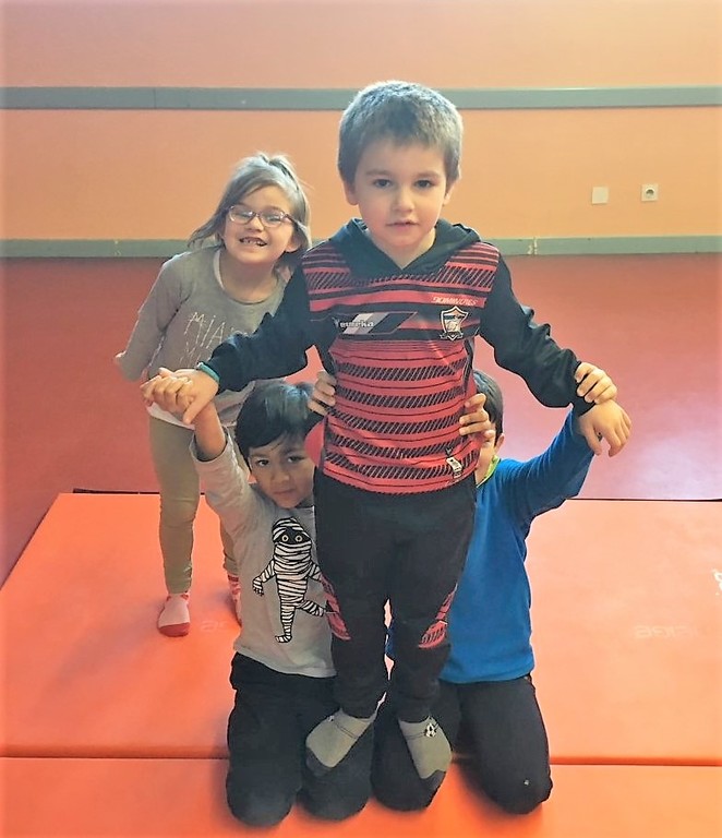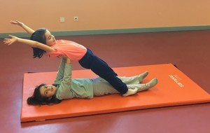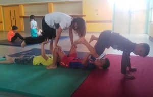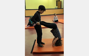 Les enfants des deux classes de l'école de Moras en Valloire en pleine initiation à la Gymnastique Acrobatique. Les élèves ont bénéficié d'une séance par semaine lors d'un cycle du 2e trimestre.