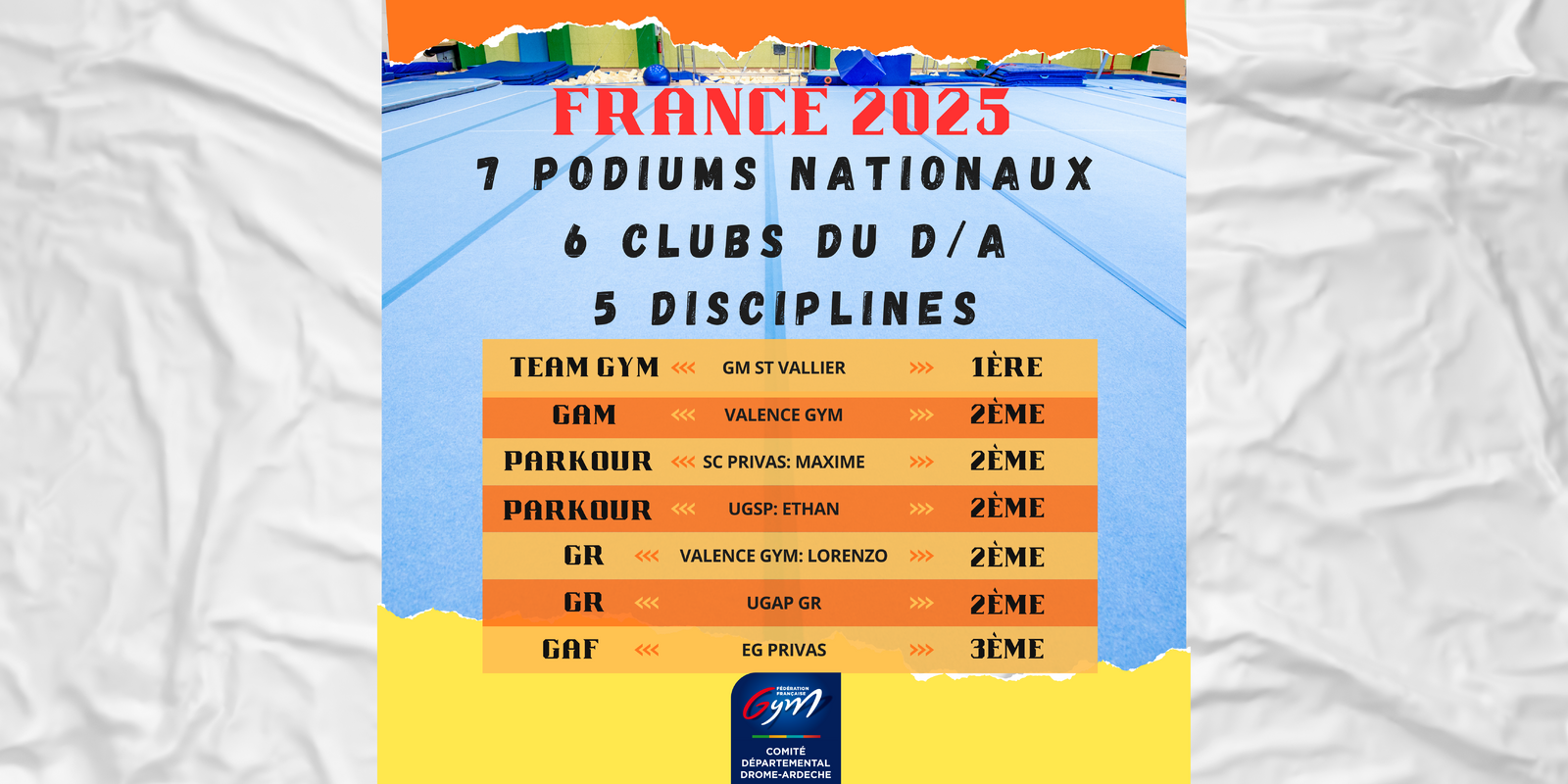 🥇🥈🥉7 podiums nationaux pour 6 clubs