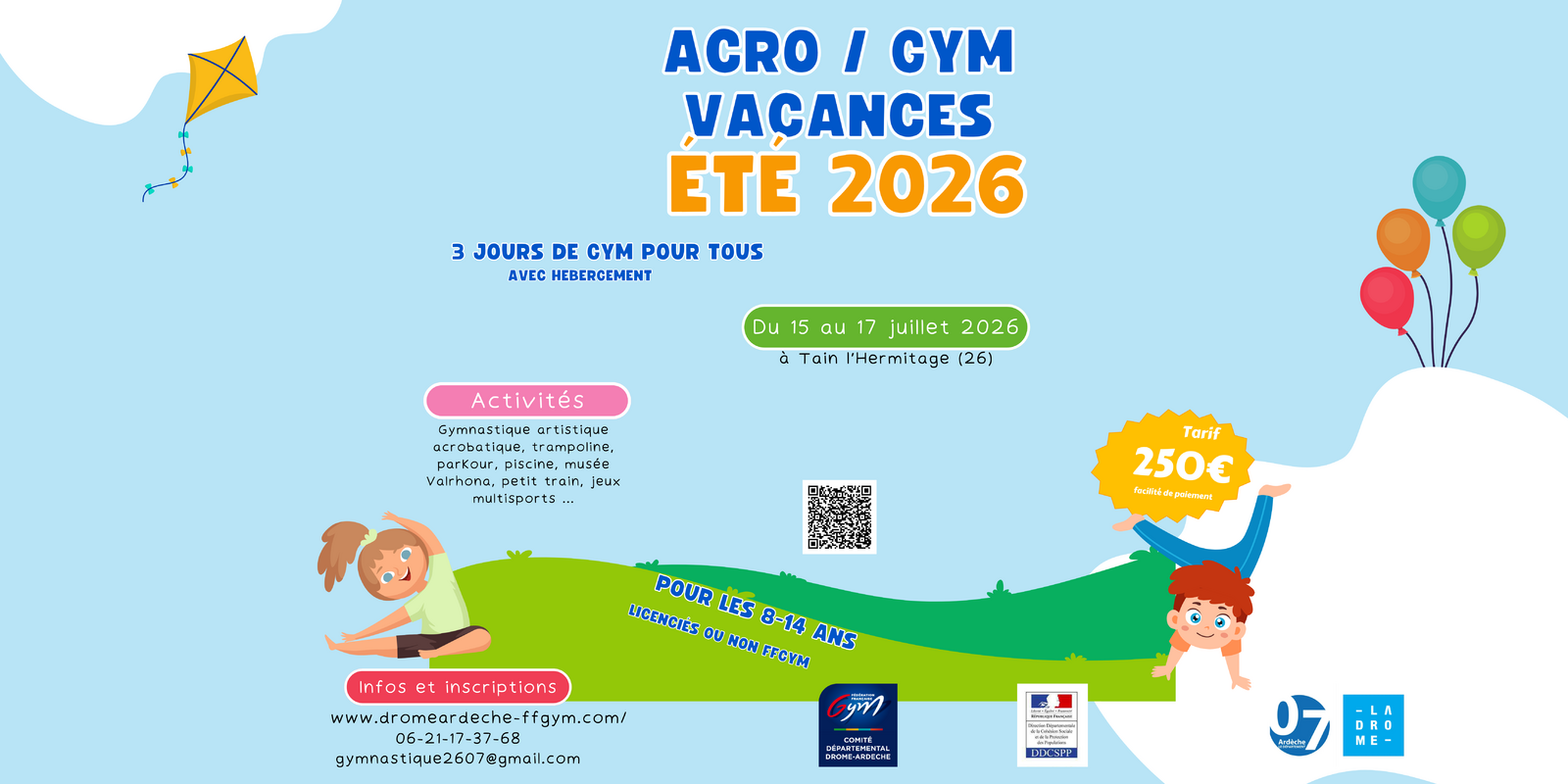 Tu aimes la gym et tu as entre 8 et 14 ans ? Ce stage est fait pour toi !